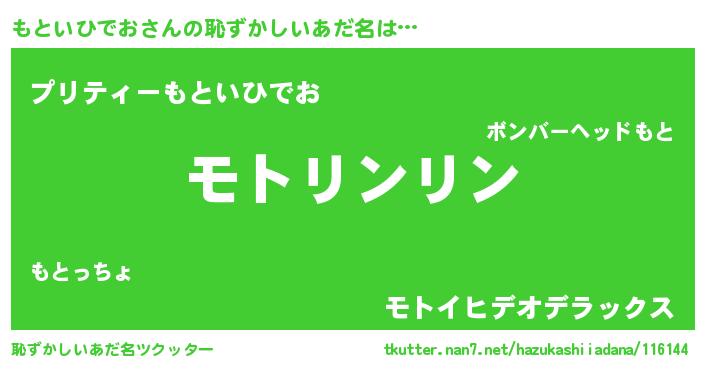 | 意味不明あだ名 | 『とにかく怪しいもといひでお』 |