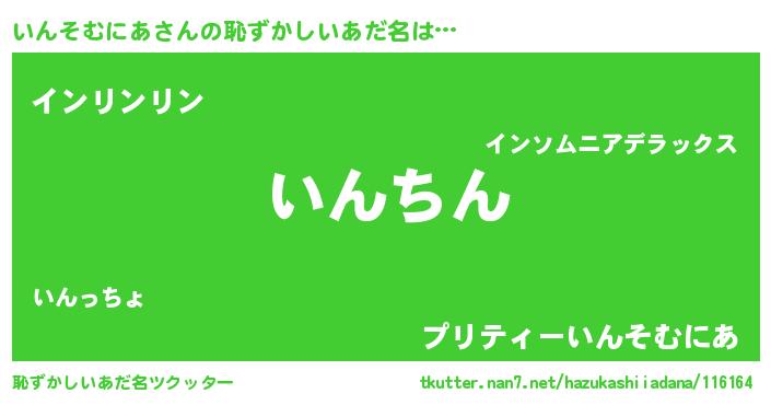 | 意味不明あだ名 | 『住所不定無職いんそむにあ(50歳)』 |