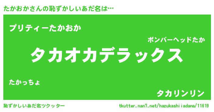 | ヒーロー風カッコイイあだ名 | 『究極戦士タカオカ』『スーパータカオカ』 |