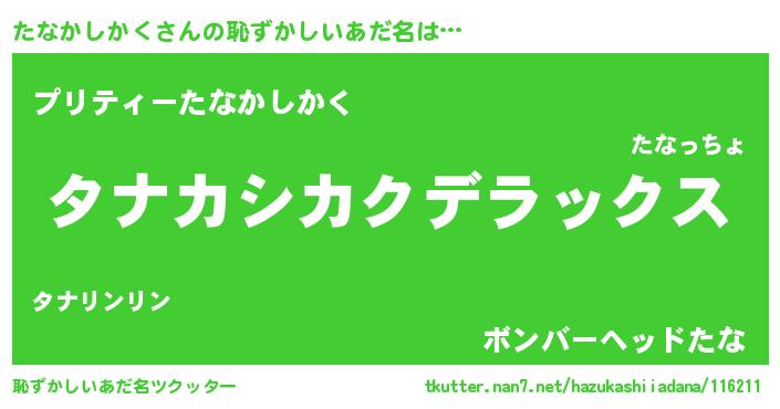 | 意味不明あだ名 | 『自称たなかしかく』 |