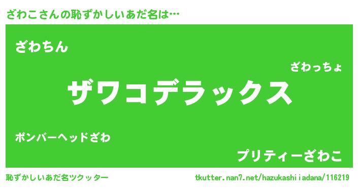 | 意味不明あだ名 | 『自称ざわこ』『永久保存ざわこ』 |