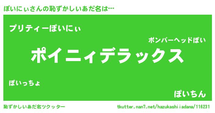 | 意味不明あだ名 | 『自称ぽいにぃ』『ペロリンぽいにぃ』 |