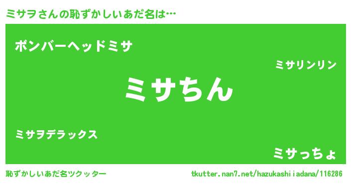 | 男性向けラノベタイトル風あだ名 | 『ミサヲスレイヤー』 |