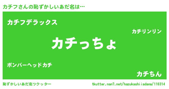 | 意味不明あだ名 | 『住所不定無職カチフ(95歳)』『自称カチフ』 |