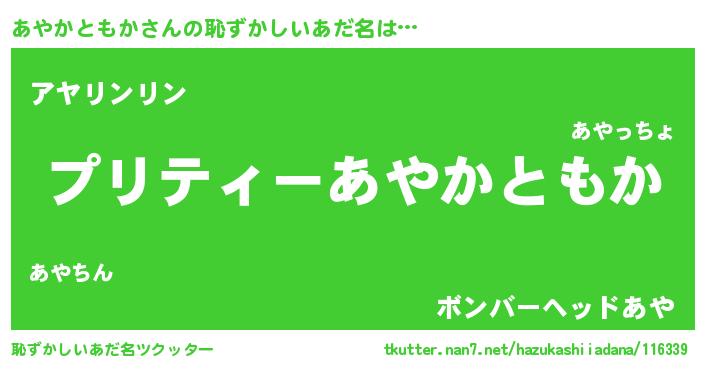 | 意味不明あだ名 | 『住所不定無職あやかともか(12歳)』 |