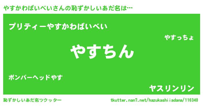 | 意味不明あだ名 | 『住所不定無職やすかわばいべい(9歳)』 |