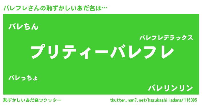 | 意味不明あだ名 | 『ペロリンバレフレ』『永久保存バレフレ』 |