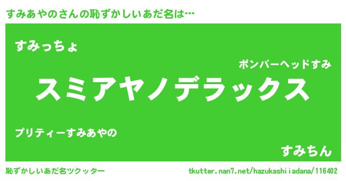 | 意味不明あだ名 | 『自称すみあやの』『ニラ科すみあやの属』 |