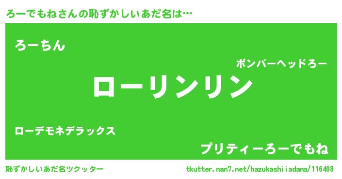 | 意味不明あだ名 | 『とにかく怪しいろーでもね』 |