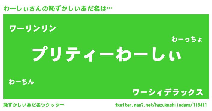 | 意味不明あだ名 | 『ペロリンわーしぃ』『自称わーしぃ』 |