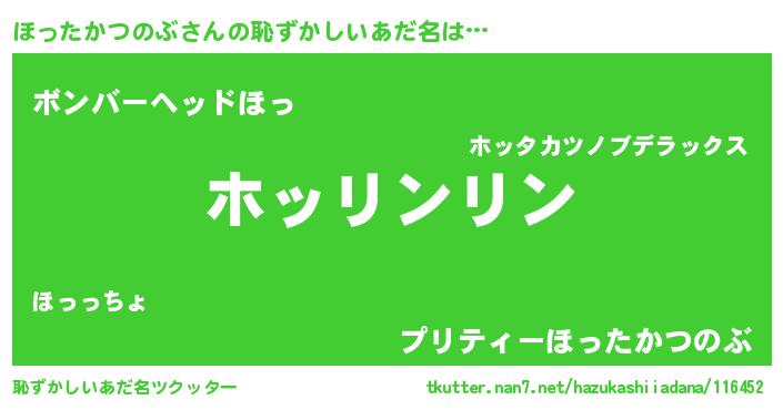 | 男性向けラノベタイトル風あだ名 | 『ダンジョンにほったかつのぶを求めるのは間違っているだろうか』 |