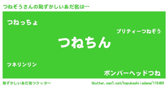 | ヘコむあだ名 | 『つねぞう(笑)』『つくし』 |