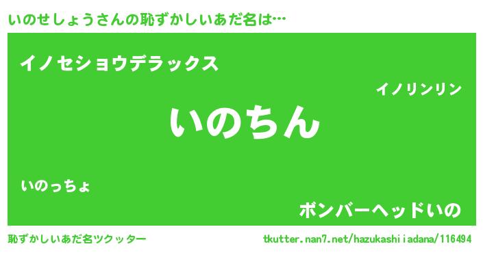 | ヘコむあだ名 | 『いのせしょう(笑)』『いのっちょ』 |