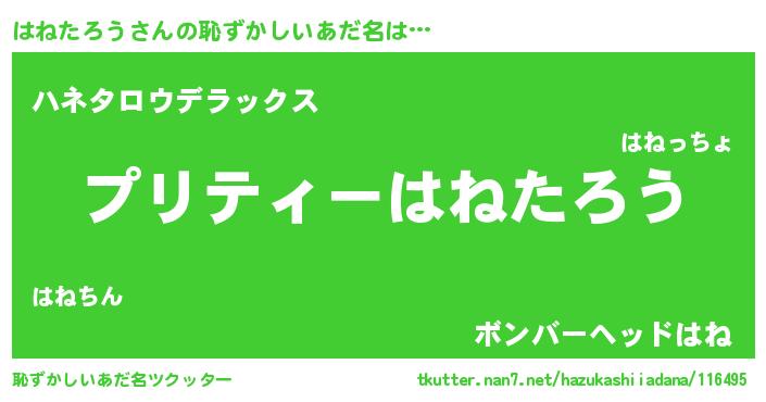 | 意味不明あだ名 | 『住所不定無職はねたろう(10歳)』 |