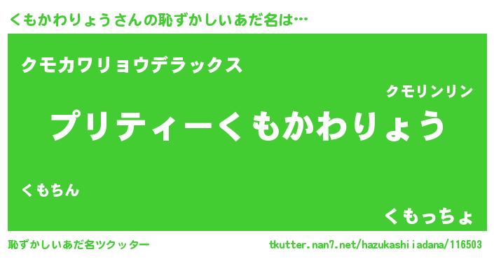| 胡散臭い通販商品みたいなあだ名 | 『必ず成功する水晶球…その名も「くもかわりょう」』 |