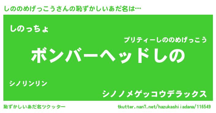 | 意味不明あだ名 | 『住所不定無職しののめげっこう(56歳)』 |