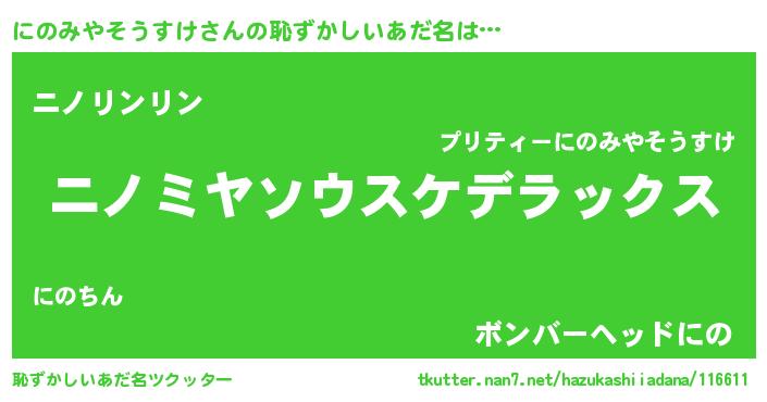 | ポケモン風あだ名 | 『ニノセウス』『ヒニノミヤソウスケ』 |