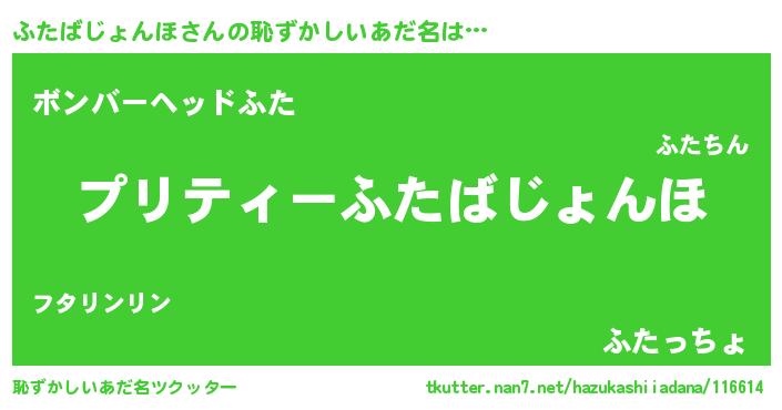 | 意味不明あだ名 | 『ペロリンふたばじょんほ』 |