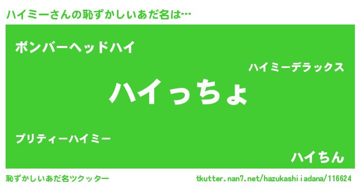 | 意味不明あだ名 | 『ハイミーフォーエバー』『自称ハイミー』 |