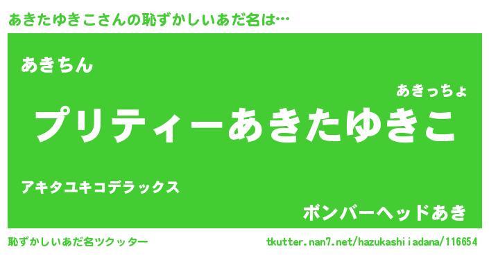 | ヒーロー風カッコイイあだ名 | 『スーパーアキタユキコ』『仮面アキダー』 |