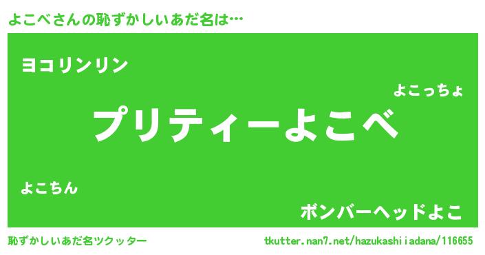 | 男性向けラノベタイトル風あだ名 | 『ヨコベアートオンライン』 |