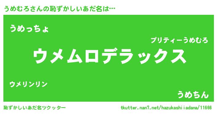 | ヒーロー風カッコイイあだ名 | 『仮面ウメダー』『究極戦士ウメムロ』 |