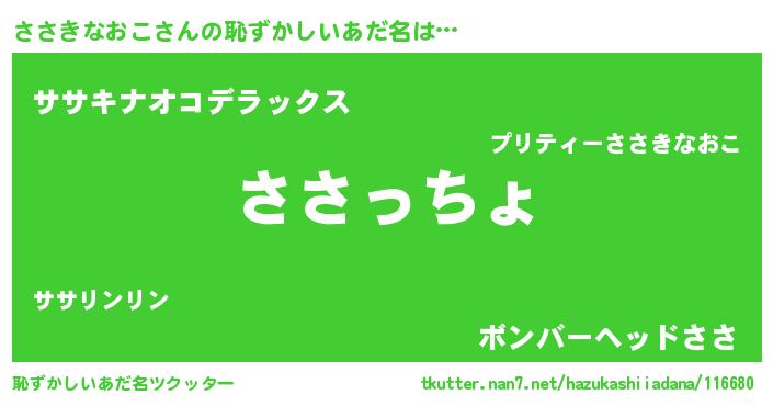 | 男性向けラノベタイトル風あだ名 | 『やはりささきなおこの青春ラブコメはまちがっている 』 |