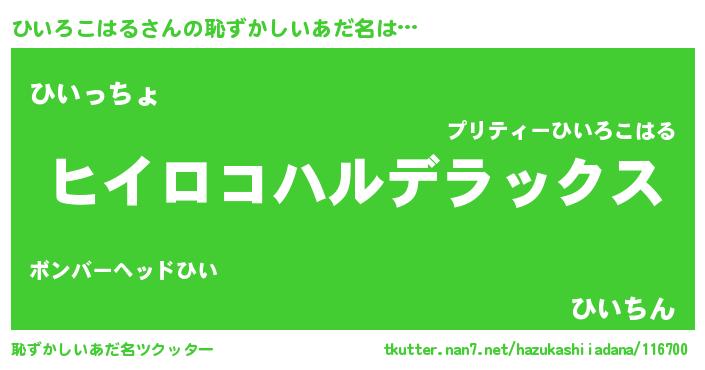 | 意味不明あだ名 | 『自称ひいろこはる』 |