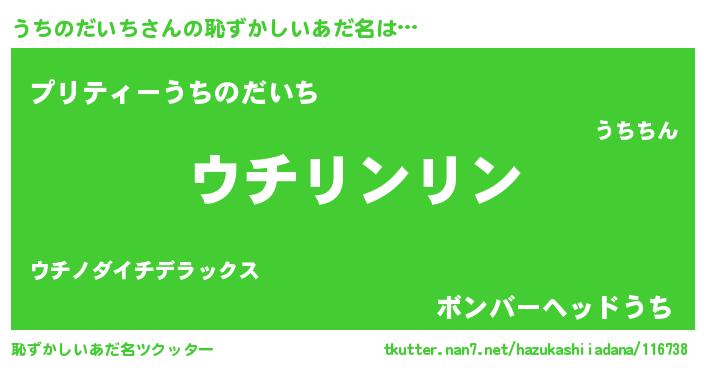 | 意味不明あだ名 | 『とにかく怪しいうちのだいち』 |