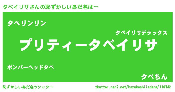 | ヒーロー風カッコイイあだ名 | 『スーパータベイリサ』『天弓騎士タベ』 |