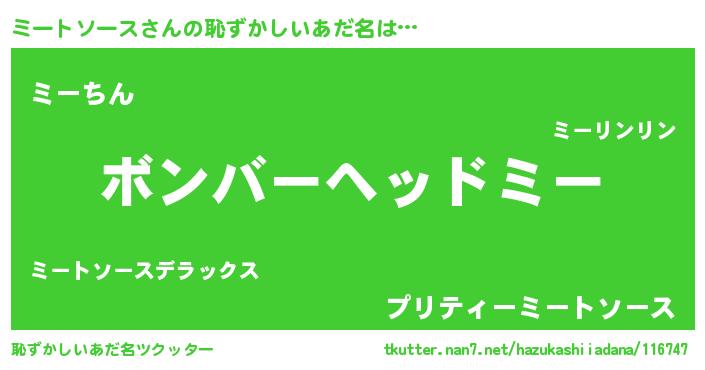 | ヘコむあだ名 | 『ミートソース(笑)』『ミーにゅー』 |
