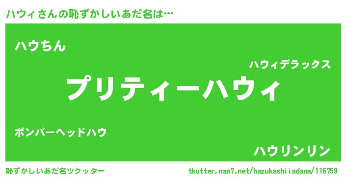 | ヘコむあだ名 | 『ハウもー』『ハウィ(笑)』 |