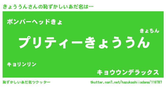 | ヘコむあだ名 | 『きょふぇ~』『きょううん(笑)』 |