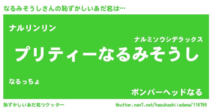 | ヒーロー風カッコイイあだ名 | 『スーパーナルミソウシ』『暗黒騎士ナル』 |