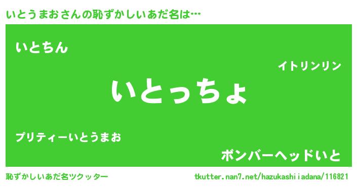 | 男性向けラノベタイトル風あだ名 | 『イトウマオスレイヤー』 |
