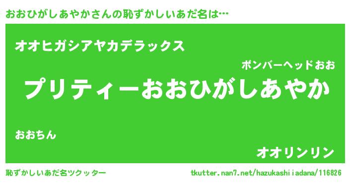 | ヒーロー風カッコイイあだ名 | 『スーパーオオヒガシアヤカ』 |