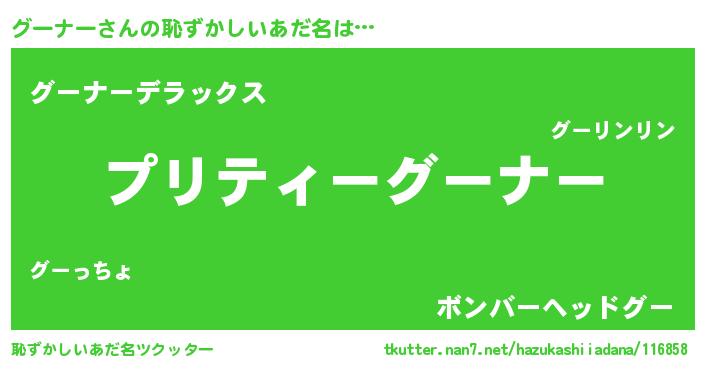 | ヒーロー風カッコイイあだ名 | 『スーパーグーナー』『愛の使者グーナー』 |