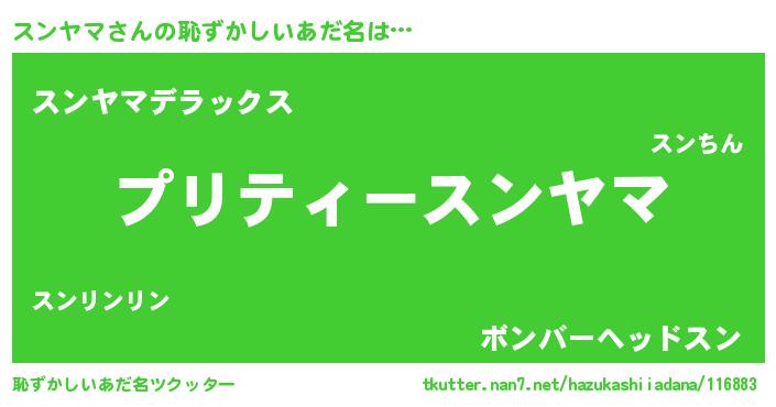 男性向けラノベタイトル風あだ名 | 『魔弾の王とスンヤマ』『スンヤマの憂鬱』 |