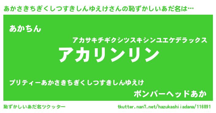 | 伝説のあだ名 | 『解き放たれた遊び人あかさきちぎくしつすきしんゆえけ』 |
