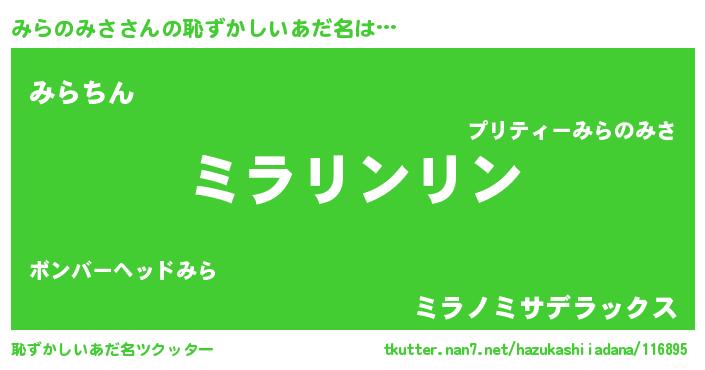 | 意味不明あだ名 | 『とにかく怪しいみらのみさ』 |