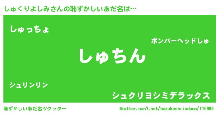 | 可愛いあだ名 | 『しゅくりよしみママ』『しゅちー』 |