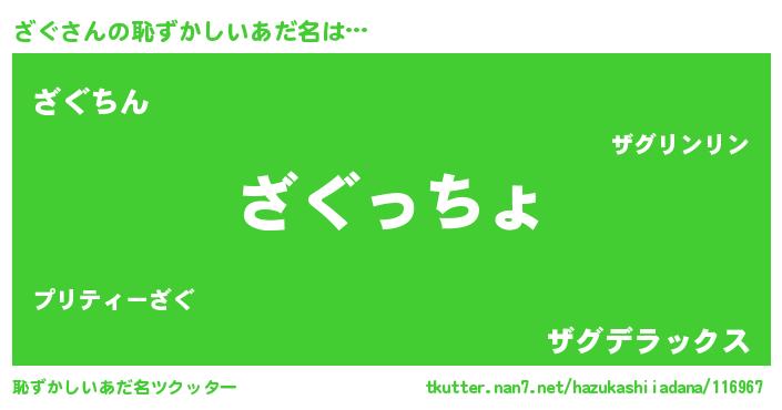 | ヒーロー風カッコイイあだ名 | 『ウルトラざぐマン』『ネオザグ』 |