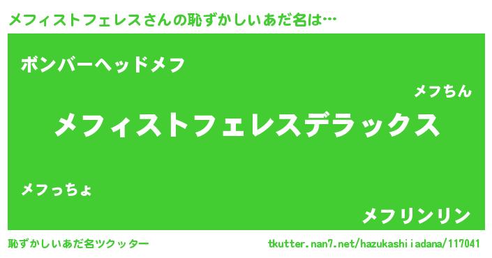| ヒーロー風カッコイイあだ名 | 『最強戦士メフィストフェレス』 |