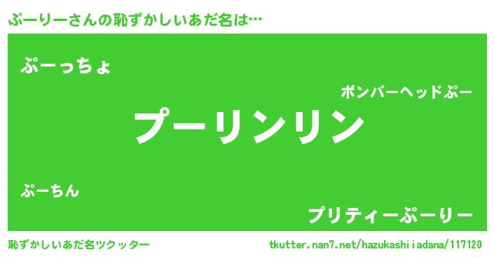 | 意味不明あだ名 | 『とにかく怪しいぷーりー』 |