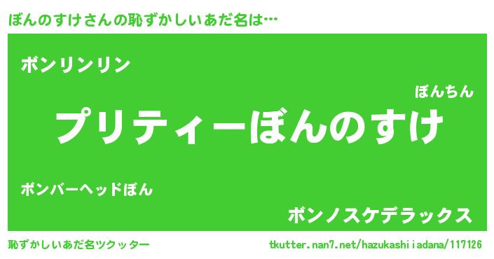 | 意味不明あだ名 | 『ペロリンぼんのすけ』『自称ぼんのすけ』 |