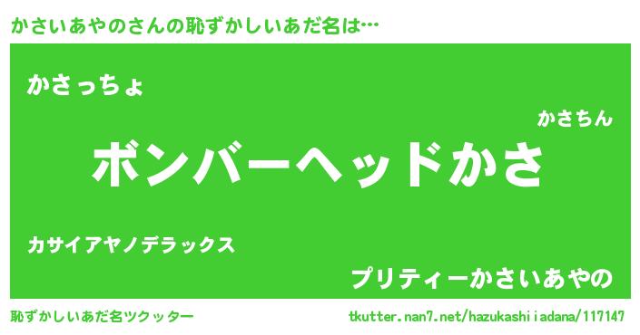 | ヒーロー風カッコイイあだ名 | 『正義の使者かさいあやの』 |