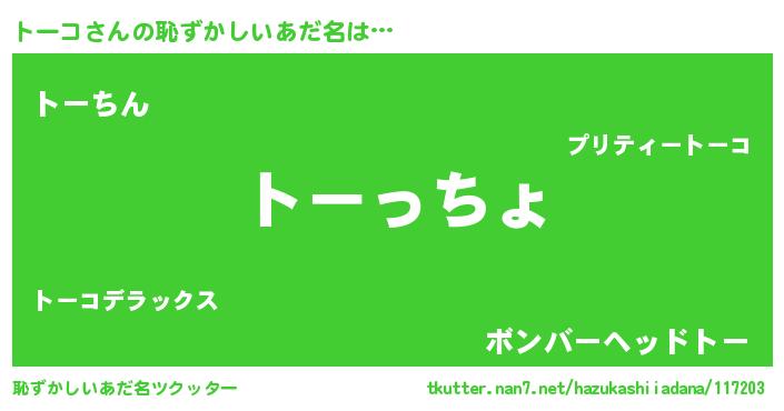 | 欧米人風あだ名 | 『トリンドルトーコ』『トーコクリステル』 |