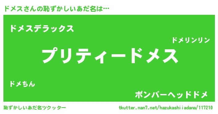 | 男性向けラノベタイトル風あだ名 | 『緋弾のドメス』『はたらくドメスさま!』 |