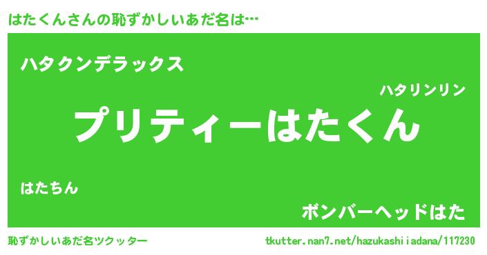 | ヒーロー風カッコイイあだ名 | 『スーパーハタクン』『仮面ハタダー』 |