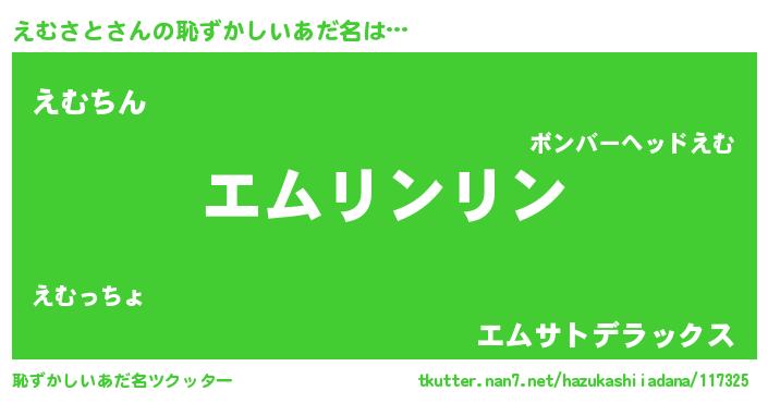 | 意味不明あだ名 | 『住所不定無職えむさと(4歳)』 |